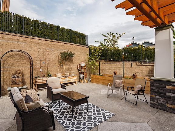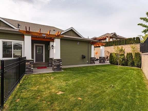 Stunning 2 bedroom & den rancher located on one of the largest lots in Sage Creek. No detail has been spared in this beautiful home. From the moment you walk in, you will be impressed by the attention to detail from the 9 ft ceilings, crown molding, updated lighting fixtures & more! Fantastic entertainers kitchen, featuring custom cabinets, under-mount lights, quartz countertops, centre island, walk-in pantry & S/S appliances, including gas range. The open concept living & dining area has a gas fireplace & large windows that look onto your private patio area. The primary bedroom is spacious & includes a walk-in closet & 4 piece ensuite with dual vanities & custom shower. The property offers beautiful landscaping, privacy, a back patio with custom stamped concrete, plus a finished, detached man cave or she shed. Dbl garage, upgraded with epoxy floor & extra shelving for your storage needs. Sage Creek in a 45+ community & has a Clubhouse with a gym, library, social room & patio. NO PTT