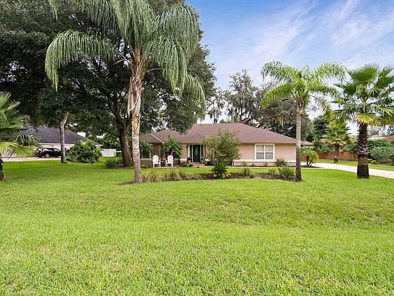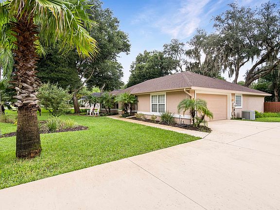 Welcome to this charming 4-bedroom, 2-bathroom home, featuring a beautiful screened-in pool and a spacious patio area, perfect for outdoor relaxation or entertaining. Situated on a generous half-acre lot, this property offers plenty of space and privacy for your family. The oversized garage provides ample storage, ensuring convenience and functionality in a peaceful and welcoming neighborhood. Ideal for both comfortable living and enjoying Florida’s sunny lifestyle! Step inside to find a welcoming, open-concept layout with plenty of natural light. The spacious living room flows into the kitchen, making it perfect for family gatherings and entertaining guests. The kitchen is equipped with ample counter space, and a convenient breakfast bar. The primary bedroom offers an en-suite bathroom with a large jetted tub and separate shower. While the additional bedrooms are generously sized, providing comfort for family members or guests. With a separate laundry area, making household chores more manageable. New roof in 2020. AC 2014.