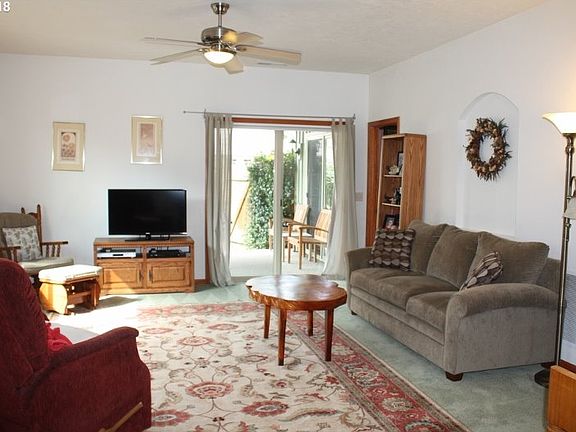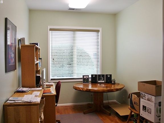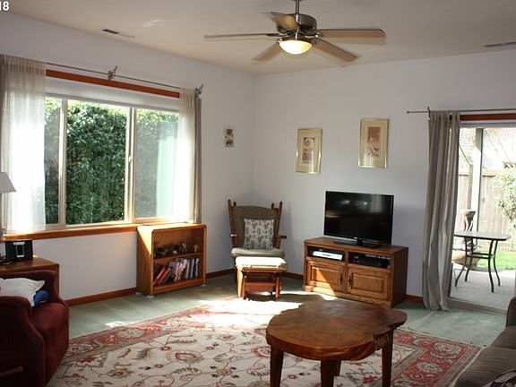 3rd room is a bonus room with no closet. Security in Eugene's premiere gated community. Well maintained one level, light and bright with high ceilings. Generous sized rooms, central air, stainless appliances. Just enough yard for a gardener with a nice covered patio. Great walkability, nearby lake and super convenient location to shopping, hospital and freeways.
