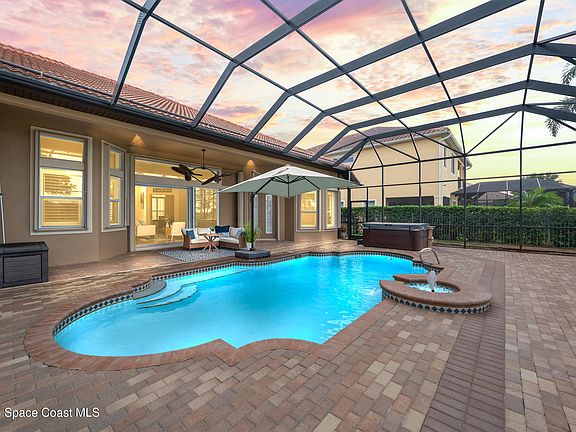 A rare find with the Duran Golf lifestyle is a perfectly positioned home overlooking the 8th hole! This Fairway Lakes beauty is truly above PAR! Inside, the home features 3 bedrooms and 3 full bathrooms, including a spacious primary suite and an additional en-suite bedroom. A versatile flex/office space with a Murphy bed offers the ideal setup for guests or work-from-home convenience. The expansive screened outdoor area is made for Florida living, complete with a solar-heated pool, outdoor kitchen, and stunning golf course views. Additional highlights include a tile roof, circular driveway and an American Home Shield warranty already in place for the new owners. Golf cart to the Duran Golf Club or to the Viera Avenue for dining and endless entertainment!