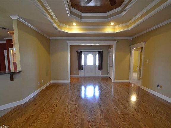 Custom built beauty on cul-de-sac lot. One level split BR design. GR has gorgeous tongue & groove tray ceiling, hardwood floor, ceiling fan & FP. A sunny breakfast area opens to over sized kitchen w/tile floor, granite counters, SS appliances & lots of oak cabinets. Hardwood floor & arched window accent the separate DR. A spacious master BR has tray ceiling, fan & closet. Master BA w/double vanity, sep shower, closet & jetted tub. A deck overlooks the huge, fenced back yard. Room for a pool or sto. bldg.