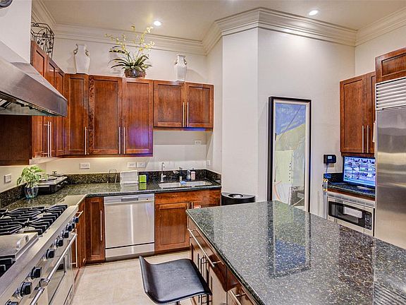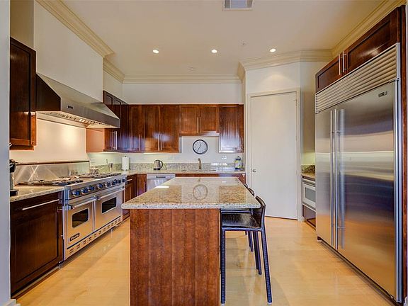 Luxury Highrise 3 bedroom and 2.5 bath 12FT ceilings, private balcony, and great Galleria views. Only 2 homes per floor. Gourmet kitchen with granite island, Viking 6 burner gas range, wine chiller, Sub Zero refrigerator, double ovens, gas fireplace, crown molding. Former model unit with additional upgrades in carpet & light fixtures. Elegant finishes and assigned parking spots. You will feel you are at a resort with beautiful landscaping. Pool, fitness room, club room, & 24 HR Concierge service available for you. Close to the Galleria Mall, easy access to 610, I-10, HWY 59, and Westpark.