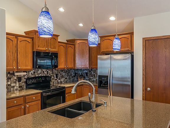 Welcome home to this spacious & updated ranch! This 4 BR, 3 BA home boasts an open floor plan with vaulted ceilings, a beautiful kitchen with a huge island/breakfast bar, new quartz counters and mosaic tile backsplash, main floor laundry, and a wonderful master suite. Entertain in the grand lower level rec room, equipped with a bar that will seat all your friends, a dining nook, surround sound system, and a vent-less gas fireplace that makes it extra cozy. The list goes on... check it out today!