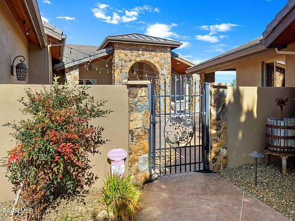 This property in the esteemed Crossings at Willow Creek is a stunning showcase of awe-inspiring craftsmanship paired with a fabulous floor plan that promises to leave you breathless. As you approach, the spacious courtyard with its ornate glass and wrought-iron/steel front door sets the stage for this Tuscan-inspired masterpiece. Upon entering, you're instantly enveloped in luxurious touches, high-end finishes, and unparalleled details throughout every room. The main living areas, including the living room, formal and informal dining spaces, and kitchen, boast high-volume ceilings with tiered, contrasting double moldings and stunning granite-stone tile flooring. The opulent great room features a Lennox high efficiency gas fireplace with electronic ignition with remote control for