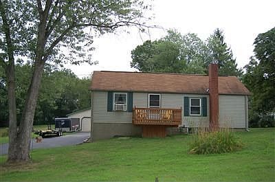 REMODELED 2 BEDROOM VINYL ranch on a 110x371 lot. Recent improvements include 32x34 heated detached garage 2010, 98% hi eff gas furnace 2010, asphalt driveway 2007, gas log fireplace in kitchen 2007, 1st floor laundry 2006, front deck and 2 tiered back deck in 2006, updated full bath 2009, French doors 2010 lead from drive into full basement, hot water tank 2006, new septic 2007 inspected November 2010, both city water and well, thermopane windows, 7x20 workshop and storage. New elec box 2011, window A/C unit