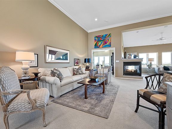 You will fall in love with this perfectly pristine and fabulously remodeled Hunters Ridge Golf Course condo. This immaculately cared for 3 bedroom, 3 full bathroom unit has soaring ceilings, soothing neutral colors and luxury updates throughout. Located just off of the 2-car garage is the drop zone and laundry closet with the Maytag washer and dryer. The eat-in kitchen features modern white cabinetry, coordinating white Whirlpool appliances, gorgeous quartz countertops, classic subway tile backsplash and a table height dining space. It flows into the larger dining area and great room, which has multiple seating areas, all sharing the ambiance of the 3-sided gas fireplace. This exceptionally bright and airy space has access to the spacious maintenance free walk-down deck, which offers golf course views of the driving range and spectacular Iowa sunsets. The main-level handicap accessible primary bedroom has double doors, beautiful flooring, tall ceilings and a spa like ensuite that is a retreat in itself. It features serene colors, wood cabinetry, quartz countertops, a dual sink vanity, plus an additonal sink and tile flooring, which continues into the large step-free tiled shower. Another large bedroom and full bathroom with a shower/tub combination complete the main level. The lower level offers another huge space complete with a large recreation room with another built-in gas fireplace, another large bedroom and full bathroom, a flex space, currently used as a home gym, a wet bar, storage space and sliding doors out to the concrete patio and open green space leading onto the golf course. This incredible dream condo could be your next home sweet home.