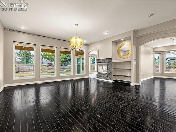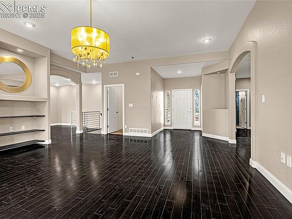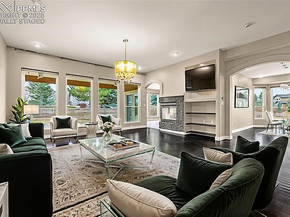 Welcome to this beautifully upgraded home on a quiet cul-de-sac minutes from Pine Creek Golf Club. This property offers an “everyday vacation” feel with tree-lined morning walks and stunning views of Pikes Peak and the Front Range. Inside, enjoy a gourmet kitchen with custom cabinetry, double ovens, two dishwashers, dual sinks, and a floor-to-ceiling pantry. Oversized windows overlook a private, fully landscaped backyard complete with loads of perennials. The heated, extended flagstone patio allows for year-round entertaining, and the spacious yard easily accommodates multiple activities—custom commercial playset, trampoline space, and more. Unwind in the spa-inspired primary bath featuring a deep soaking tub, custom cabinetry, and elegant European finishes. Additional highlights include high-efficiency windows and custom shades (2018), expanded window wells, Legrand recessed outlets and switches, and over 100 thoughtfully placed trees and shrubs creating a peaceful, private setting. Too many upgrades to list!. This home truly offers comfort, style, and the best of Pine Creek living.