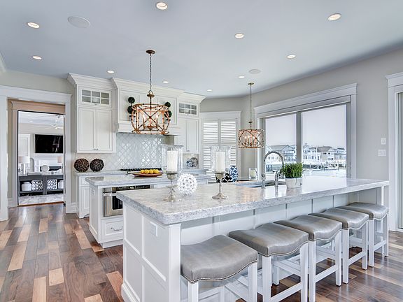 One-of-a kind Stone Harbor Bayfront. Location, design, and top quality construction converge at one of the premiere basins/waterways in Stone Harbor. Extraordinary views from walls of windows and expansive exterior entertaining space with pool. Protected boat slips, oversized fixed dock, and 100ft new bulkhead. Summer living room with fireplace, full-service wet bar and wall of glass doors that open bringing the outdoors in. Tastefully designed and decorated & furnished. 10ft first floor ceilings; living room with coffered ceiling; fireplace and built-in's. Chef's kitchen with custom-painted maple cabinetry, two exotic walnut wetbars and top-of-the-line appliances. Open dining room; first floor bedroom with private bath; 3 level, 2 door elevator; and oversized garage. Double-height foyer leads to the upper level landing and adjacent family room; 6 en-suite bedrooms including the master suite with volume ceilings, fireplace, and wall of patio doors leading to a private balcony with exceptional bay views. Custom walk-in closet and designer bath with soaking tub, separate shower, and high-end fixtures, double vanity and marble tile. Lot is combined 50'x100' and 50'x116' parcels. A rare opportunity to purchase a landmark property. Assessment does not reflect new construction. Call for an appointment.