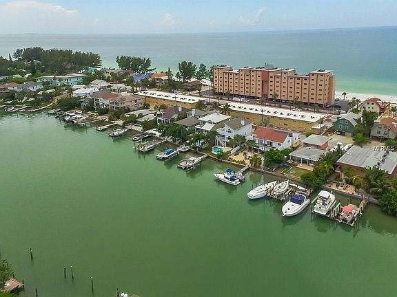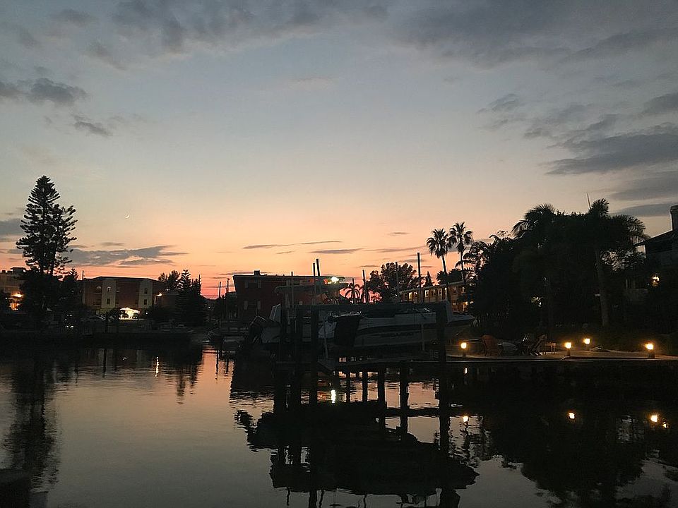 Cute two bedroom two bathroom beach cottage, on the water with dock for up to 50 ft boat. No bridges out to the gulf! Boaters dream! 5 minute walk to gorgeous Sunset beach and Caddy's. Cycle everywhere!