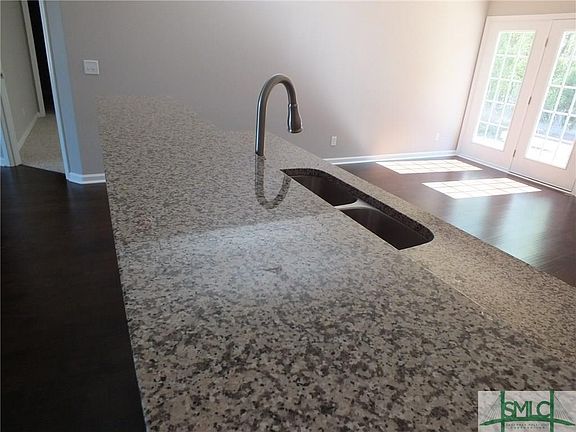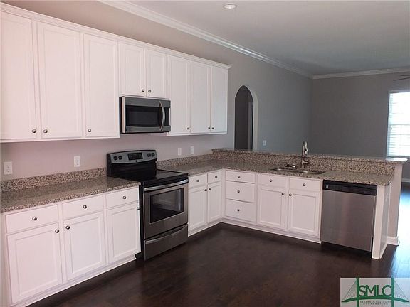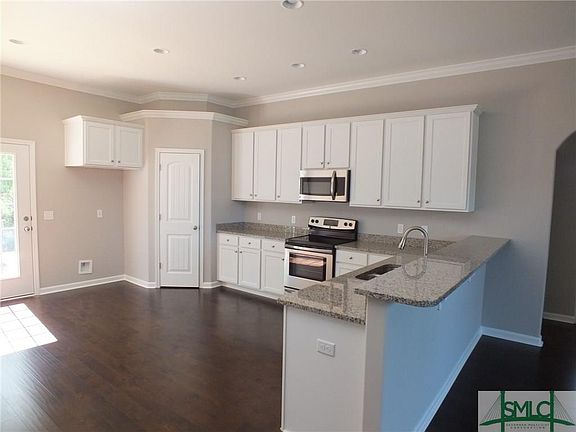Pooler Elegance! This home is a split floor plan, with striking white cabinetry, grey walls, and fabulous Granite countertops that bring it all together. Just off the kitchen you will enjoy the deck with bench seating. Perfect for grilling out and entertaining friends, and family. High ceilings, Recess lights, crown molding are just a few of the extras that give this home a WOW factor when you walk in the door! Master Suite has large walk in closet, garden tub, separate shower, and double vanity. All of this and more on a premier large wooded lot. Come see and feel the difference.