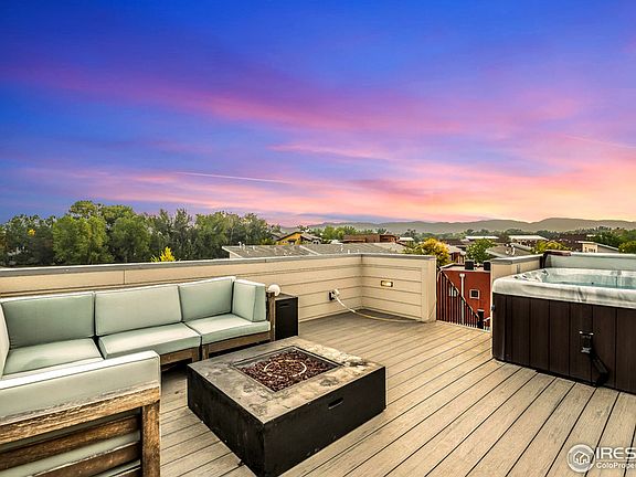 Wonderful Modern 2-story on a corner lot! ROOFTOP Deck w/ hot tub to enjoy 360 degree views of mountains/sunsets/stargazing. Urban contemporary design: quartz tops, engineered hard wood flrs, Schroll custom cabinets, metal railing w/steel cables, custom tile back splash & showers, SS appliances, designer light fixtures, barn door. Non-primary VRBO's allowed! Professionally finished basement, side & front yard landscaping, fully fenced. 5 min stroll to New Belgium, Poudre Trail and new kayak park. HOA includes community garden, Xfinity TV and internet and trash service. Closer to Old Town square than many places in the "heart" of Old Town. Hot Tub on deck stays! Fort Collins new high speed Connexion internet in front yard!