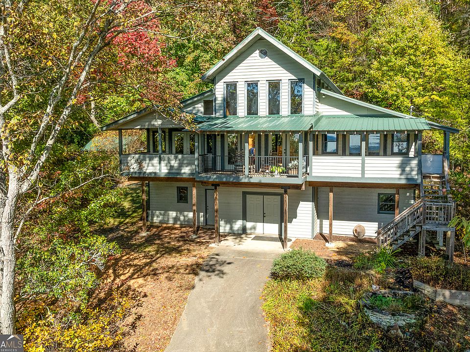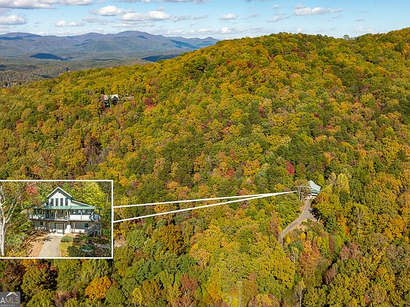 Nestled on 5.82 private acres along the side of Yonah Mountain between Cleveland and Helen, this beautiful home blends rustic charm with modern comfort, featuring 3 bedrooms and 3 bathrooms. Step inside from the porch where the mountain views are breathtaking and you'll be greeted by soaring ceilings and a cozy loft above. Relax in the inviting living room with a good book or your favorite show, or gather in the warm, welcoming kitchen with solid-surface countertops, stained cabinets, and a casual eat-in area overlooking the living space. Both main-level bedrooms are generously sized, each with its own ensuite bathroom, large closet, and direct access to the front porch. The lower level offers an additional bedroom, bathroom, and a secondary living area, perfect for guests or extra space to spread out. Outside, enjoy the peaceful setting with a back porch, two fire pit areas, and several storage sheds. With its breathtaking views of the North Georgia Mountains, this property is truly a mountain retreat you won't want to miss. Schedule your showing today! *Additional pictures coming soon*