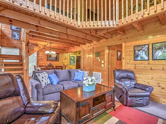 Luxury cabin sitting on a rushing creek with plenty of privacy! This cabin has been amazingly maintained by the current owner. Beautiful open floor plan features gas logs surrounded by a stacked stone fireplace, completely updated kitchen with all stainless steel appliances, stunning mahogany table in the dining room, and large double pane windows in the living room. This 2 BR/2 BA includes a bedroom and full bath on the main level and a bedroom and full bath with a honeymooners Jacuzzi tub, shower, king sized bed and air hockey table in the second level loft. The upper porch includes a hot tub and a great view of the large creek below. Currently doing on average $27,500 in gross rentals for the past 3 years running. All furniture is in great shape and the location is prime, being right in the middle of Pigeon Forge and the Ever So Desirable Great Smoky Mountains (Gatlinburg)!