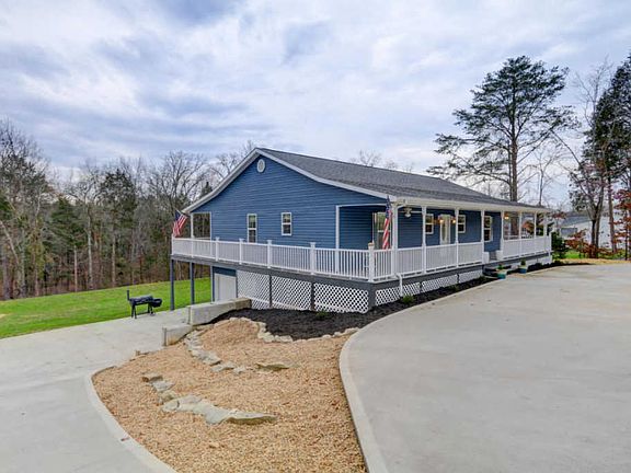 Your move-in ready dream home on the lake awaits! This basement rancher (with full-depth basement garage) is situated on a lovely level lot. Vaulted ceilings, an open floor plan, and granite counters are just the start! Wrap-around porch, 10'x24' floating dock on year round water, community concrete boat launch with dock, and even a storm shelter in the basement. Come check it out quickly!
