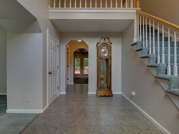 Remarkable Colonial home with an open floor plan The living room and dining room feature large windows. A large kitchen with a bay window opens into a family room with a stone fireplace. Huge master bedroom and other bedrooms are very large. A finished basement with a den, 4th bedroom, and anoffice/craft room. The double garage is almost deep enough for 2 cars on each side. Private backyard with 3 tiered deck and two storage sheds. Newer roof and heat pumps.
