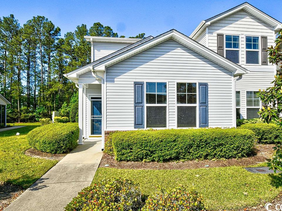 Don't miss the opportunity to own this 3 bedroom, 2.5 bathroom end unit in the highly sought after community, Heatherstone in Berkshire Forest. This unit was the model unit and features all the upgrades including granite countertops, upgraded blinds in every room, extra windows being an end unit, all new carpets throughout, and two entrances- the front door and a sidewalk leading around to the screened in back porch with exterior access. The kitchen offers all stainless steel appliances, a pantry for extra storage, and breakfast bar, combined with the living and dining areas giving a spacious open concept. The master, located on the first floor, includes a walk in closet, private master bath with an oversized tub/shower combo and a vanity with seating, and access to the screened in back patio with a private wooded view. The remaining two bedrooms, upstairs, feature plenty of closet space and easy access to the second full bath! A loft area at the top of the stairs makes the perfect office, playroom, or additional living area! Washer/dryer hookups in the unit as well for added convenience. Heatherstone offers a community pool, clubhouse, playground, gazebo on the pond, and more! Perfectly situated close to schools, grocery stores , and all of the Grand Strand's finest dining, shopping, golf and entertainment attractions, and just a short drive to the beach. You won't want to miss this. Schedule your showing today!