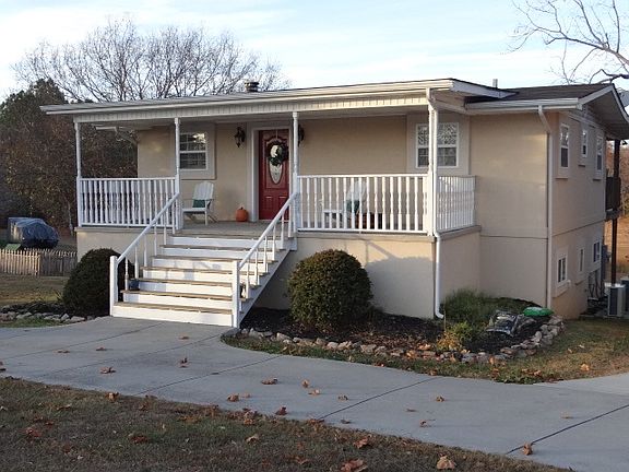 Delightful property has been entirely remodeled (down to the stud walls). Stucco exterior extra durable with synthetic stucco accents around windows for decor, vinyl soffits; garage is vinyl sided with stone veneer front. Beautiful pine flooring in living areas, replacement windows, new electrical, plumbing, off community well and now hooked to city water with underground electric. Separate PROPERTY UPDATE LIST is available. Two large covered decks on rear 10 x 35 overlook lake; subdivision lake access road runs beside this lot. Lake access just 1/4 mile away at Grainger County Park. Fire pit in yard; dog fence remains. Garage offers storage, utility sink and workshop area, separate apartment overhead includes BR, BA and kitchenette, plus jetted tub in bath and gable storage.