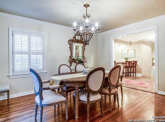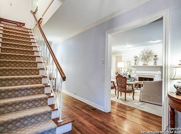This amazing 4bedroom and 3 bath sits on one of the most desirable streets in Terrell Hills. The updated kitchen has stainless appliances and an eat-in breakfast area. The kitchen opens to an inviting family room with French doors and a wall of built-ins. Gracious and formal living room and dining room with crown molding and hardwood floors. All bedrooms are upstairs. The master suite is spacious and private with a separate tub and shower and walk in closet. Outside is a covered deck a stone patio with a fireplace. There is a detached three car carport with walk in storage. This home has amazing curb appeal and natural light throughout. Truly a Terrell Hills classic.