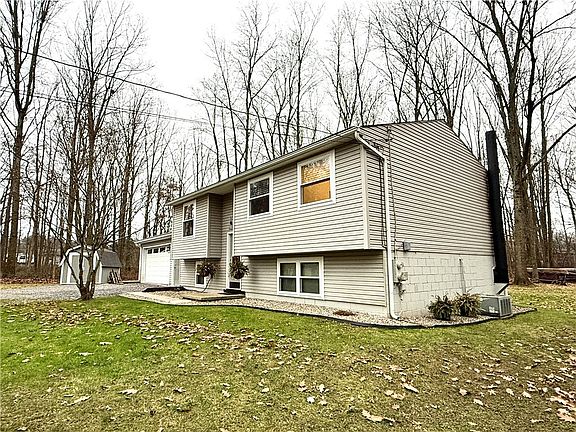 Located on a quiet street with minimal traffic, this beautiful home is surrounded by wooded properties, offering a serene and scenic setting. The property features 3 bedrooms and a newly renovated bathroom. The bathroom boasts a new linen closet, tub, vanity, and fixtures. All lighting and fixtures have been modernized throughout the home. Additionally, this home is equipped with new windows, blinds and doors. The basement is equipped with an oil furnace and a wood burning furnace complemented by 6 cords of wood covered in the back yard, ready for use. Externally, this property includes a shed and a secluded backyard retreat featuring an electrified, insulated 12x18 mancave/she shed! Do not miss this opportunity to make this charming property your new home!