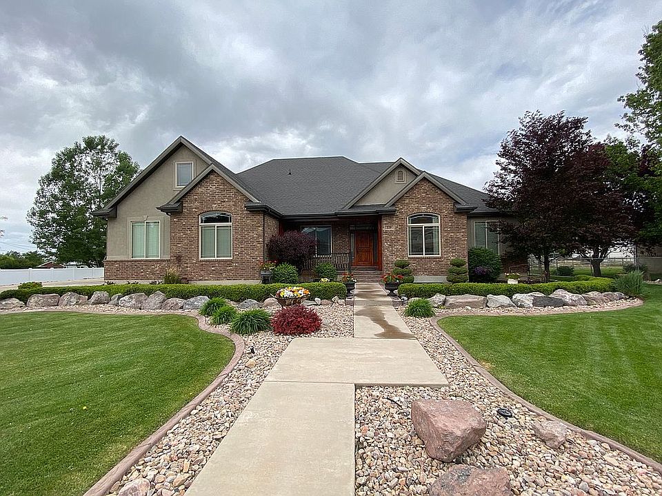 Owner built, custom home with many extras on a large half acre lot. 4635 square feet total; 2000 on main, 647 upstairs, 1988 basement. Nine foot and vaulted ceilings on the main floor. Open concept kitchen/family room with gas fireplace, 4 bed, 3 and a half bath all with high quality finishes. The upstairs bedrooms each have a large walk-in closet. Desk/study area. Walkout basement has been framed for two additional bedrooms and one bath. Plumbed for a gas kitchen, family room, dining, plenty of storage and is ready for the 4-way inspection. Basement level patio too. Central vac, water softener, 2 furnaces, 2 water heaters, plumbed for a second AC, 6 inch structural walls, brick wainscoting, coax wiring throughout, half share water, animal rights. Travertine and carpet flooring, quality knotty cherry cabinetry, granite countertops, under mount sinks. Beautiful landscape with sprinklers and drip lines. .42 acre flat lot. Extra large, concrete and rock patio with gas access. 3 car garage with interior paint and water faucets. Plenty of additional concrete parking. Graveled access to back yard for larger RV parking. This is a beautiful, high quality, very well cared for home!