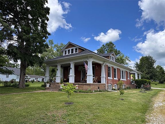 Nice, older brick home with 3 bedrooms on main floor, 1.5 baths, beautiful hardwood flooring throughout, has pocket door separating dining room and living room, 9' and 10' ceilings, vinyl windows, central air, and heat, new kitchen with range, refrigerator, and micro-wave, has full unfinished basement, with washer and dryer hookup. Large front covered porch for relaxing on those summer evenings! new roof,..Approximately 1568 sq. ft. of living area, and a large double lot with circle drive. Home has been meticulously kept and updated by owner.. "Take a Look at this one" !