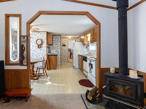 Sweet little ---Spacious & Comfy, this well laid out home is homey. Cozy up to the wood stove in the large living room, which is open to the Kitchen Dining combo. Lots of storage here, including a raised bar & built in cabinets (like a hutch and buffet) surrounding the front window. The Master Suite is really sweet, with a Soaker Tub, a walk in shower, and a walk in Closet. A large Front Deck, and a 3 tiered Back Deck that leads to the 12x20 workshop. 2 more nice sized bedrooms and a full bath complete this great package. Includes all appliances, nice looking carpet, this place is perfect for a weekend getaway or full time living. It's well kept, A great neighborhood, close to the lake, And there is lots more to like about this great little home.