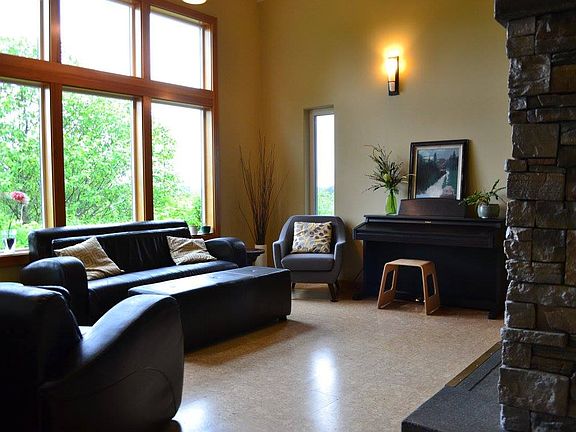 This custom built home was designed with a great layout for comfortable living. Large windows and 12'+ cathedral ceilings in the living room frame the views and let the light in. A built in modern fireplace adds ambiance and provides a cozy place to spend winter evenings. Walk out onto concrete patios from both the dining and the master bedroom and into an easily maintained landscaped yard. Energy efficient heat pump systems for both in-floor radiant heat and hot water. The paved driveway and the attached garage makes this a very functional home. Located in beautiful Sitka, AK. https://visitsitka.org/