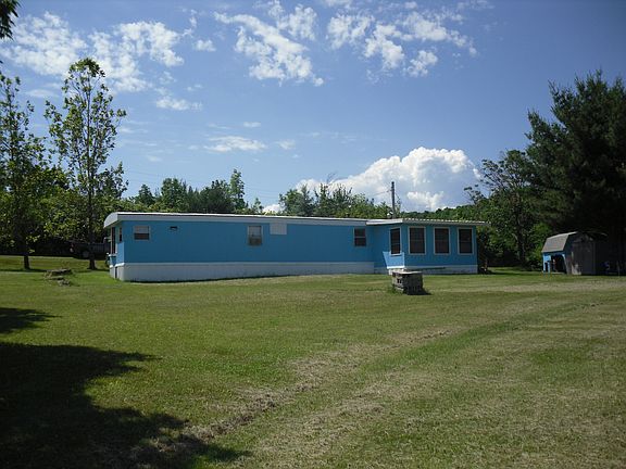 Gorgeous views from this 5 acre surveyed, mowed, open lot. Included is a nice 14'x52' home with new carpets, paint, enclosed porch, drilled well and septic. All appliances included as well as 2 sheds. Build your dream home, bring your animals, take in the stunning views. Watch the deer and turkey from your living room! All new exterior paint including roof. Super low taxes and heating costs. Great starter or retiree home. Nothing to do but move in and enjoy the views and wildlife!