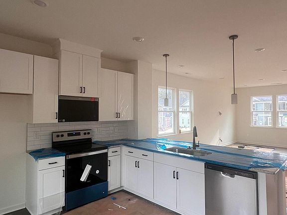 Beautiful Townhome has 9' First Floor Ceilings. 42' Brellin White Kitchen Cabinets, Beautiful Moonlight Granite Countertops,Pine View, Dark Elm Luxury Vinyl Plank Flooring. Kitchen back splash is Artezen Herringbone in elegant white. Enjoy the Primary Bathroom Shower surrounded by Catch 4' X10' Ice/White Gloss tiles and glass door. 2 Pendant lights over kitchen island gives an updated style while entertaining your family and friends. Enjoy Whirlpool Stainless Steel Appliances and single basin kitchen sink.