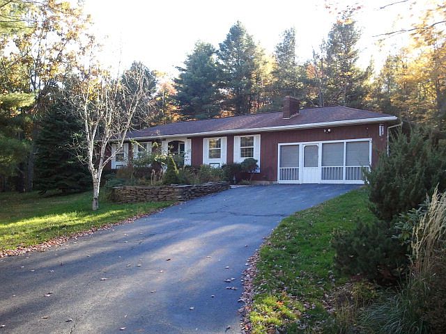 Country living only 10 min from town. Quality built and beautifully maintained 3 bdrm 2 Full Bath ranch located on a 5 acre wooded lot with mature trees and lovely landscaping. This home features an open floor plan with newer kitchen and updated bathrooms. Sliding doors in kitchen lead to totally fenced and private in-ground pool surrounded by decking and nicely landscaped. Lower level has large family rm and 2 other finished rooms.Newer roof and windows, 2 outbuildings, shed and much more! House is bank owned and being sold in As Is condition.