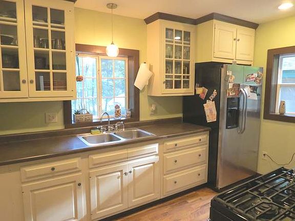 3 bedroom, 1 bath home on Rhinelander's west side. Roof shingles, siding, windows, doors, flooring, fixtures, 2 car detached garage with extra storage. The main level offers a remodeled galley style kitchen with stainless appliances, living room with a sliding glass door, dedicated dining room, a spacious master bedroom with a full bath and large closet. The upper level consists of two additional bedrooms. The basement provides laundry, storage, and workshop space with a walkout to the backyard. A spacious private backyard includes a storage shed, garden space, and a campfire pit to roast marshmallows.