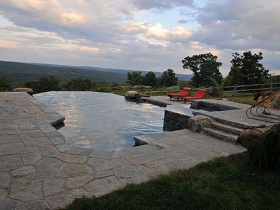 Views, Views, Views!! One of the highest points in all of Woodbury and by far the best views in Litchfield County. Long distant views from the hilltop off of Hoop Pole Hill Road. Enjoy the breezy summer nights on your stone terrace next to your vanishing edge gunite pool with jacuzzi. 5-acre plot with a level house site and privacy from your neighbors. Light and bright contemporary home with a wall of glass to take in those sweeping views far into the distance!. Amenities provide 4 to 5 bedrooms and three full baths, generous sized dining room overlooking the living room with 24' soaring cathedral ceiling and a wall of glass. Many recent upgrades over the past year, plenty of room for everyone, and an ideal spot for an in-law suite. Beautiful outdoor space with a spacious level yard, privacy from neighbors, and room for outbuildings or expansion. Million-dollar VIEWS for less!