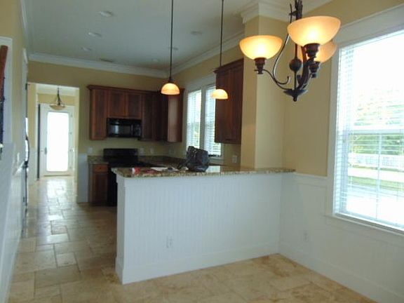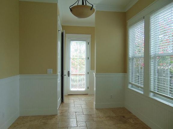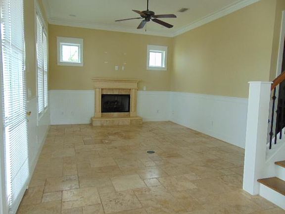Unfurnished two-story house for rent, located just two blocks away from the beach and close to Pier Park! Home features travertine and hardwood floors, gas water heater and fireplace, crown molding, and 10 ft. ceilings. There is a gas fireplace in teh living room. There is a bonus room down stairs set up like an office area. The large kitchen contains granite counter tops and a walk in pantry. Large covered front porch, and a fenced back yard for privacy! Lawn care included. Community pool. NO SMOKING. Pets allowed with deposit.