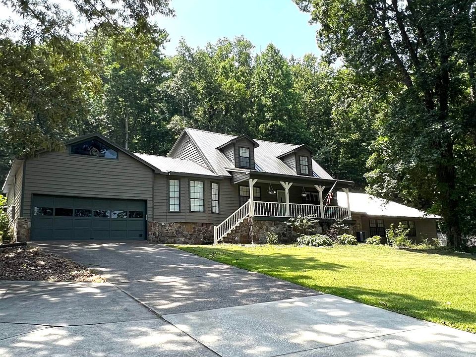 DOGWOOD ACRES Sprawling Country style home on beautiful oversized lot. Home has many new updates including new exterior paint, new AC systems, new metal roof, and new pool liner. Home features include Primary suite with his/her WALK-IN closets, large bath with double vanities, walk-in shower and jacuzzi tub. Large living room with rock fireplace, and built-ins. Beautiful custom plantation shutters throughout. Eat-in kitchen looks out onto huge private patio and IN-GROUND POOL. Kitchen boasts granite counter tops, stainless appliances, ceramic tile floors and huge walk in pantry. FOUR attached garages, and 1 detached. So much SPACE offered! Bring your boat, Home is .4mi from Godfrey’s Marina!