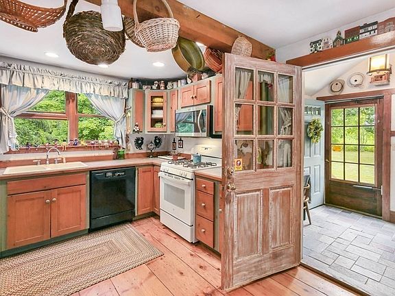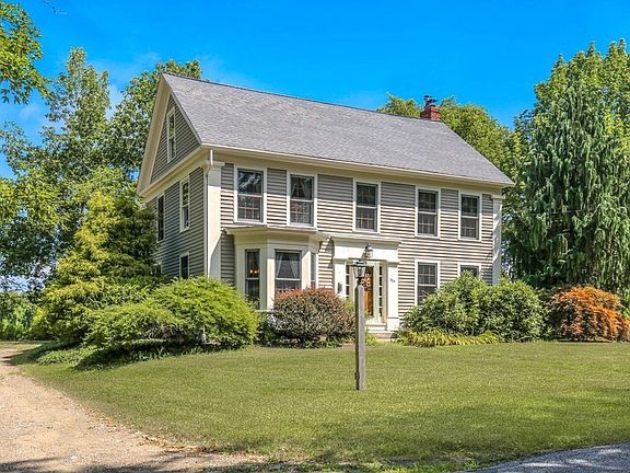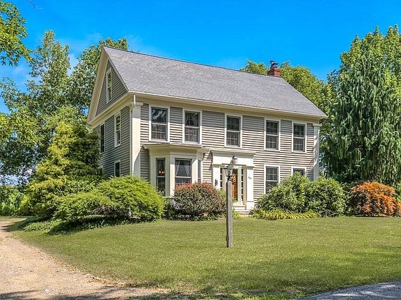 Welcome to the former "King Property" a Tavern once run by Samuel Sibley c.1700's. Current home was built 1845 & completely renovated down to studs in 1998. This Center Hall Colonial still contains original Architectural Details from the Wide Plank Wood Floors, Exposed Rough Sawn Timber Beams, Built-In Storage along w/ some of Today's Amenities: Recessed Lighting, Alarm System, Whole House Generator & Humidifier, Updated Stone mason Fireplace w/Gas Insert. The Slate floored Foyer leads to an Eat in Kitchen w/ Newer Appliances. The formal Dining Rm w/ Wood Floors & Oversized Windows wraps around to a Front to Back Fireplaced Living Rm. Upstairs find 3 Large Bedrooms w/ a Front to Back Master Bed. The Bath hosts a Claw Foot Soaking Tub. The Walkup Attic has a complete Wood Floor, great for Storage. The Frequently Manicured Grounds offer tons of privacy & are also part of Conservation land. Updates '98: Boiler, Ele Panel, Hot Water Htr, Bath, Windows, A/C, Front Dr, & Plaster Ceilings.