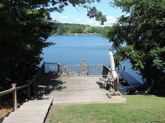 ARGYLE, NEW YORK. Summit Lake! A very charming remodeled cottage with open Kitchen-dining-living areas. Ship lap throughout with cathedral ceiling. The kitchen is adorable with new cabinets and counter top. All the floors are Bruce engineered maple flooring with exception of porches, utility room and bathroom. The enclosed front porch is great for dining, playing board games, reading and viewing the gorgeous lake. 50' frontage with large boat docks. 1.24 acres with bunk house and storage shed. Loft. Bunk house! If you are looking for a vacation home on a very charming lake - wait no further. Ceiling fans.