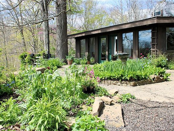 This incredible home was designed and built to allow the owner to feel as if it is at one with nature. It really blends into the surroundings well and provides such a wonderful calming effect as you sit and enjoy the incredible Brown County views. It was build with the emphasis on a simple life and a focus on nature, something many of us long for today, so this property is one sure to capture a lot of attention. The stone and concrete floors keep the home feeling nice and cool in the Summer. There is the option of heating with wood, an auxillary propane heat or adding baseboard heat where connections are already in place. There is a lot of warmth from the sun on sunny days. The barn is solid, though the exterior needs work.