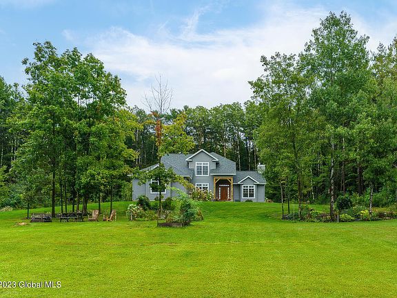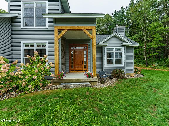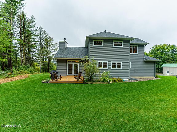 Beautiful custom 3 bedroom, 2 ½ bath home with stunning views, landscaping & privacy. Large eat-in kitchen with Kitchenaid stainless steel appliances, custom Amish crafted cabinets with Sheldon slate countertops. Large open family room with 44'' fireplace, Adirondack stone surround & built-ins. Oversized mudroom with laundry, half bath & dining room complete the first floor. Primary bedroom with custom walk-in & ensuite, two additional bedrooms & full bath upstairs. Sheldon slate shower, flooring & countertops, Amish milled maple flooring, Anderson 400 windows & door with transoms, zoned HVAC & entirely custom Rogue Valley front entrance door. Oversized attached garage, gardening shed & insulated 30 x 48 outbuilding with water, etc. Agent owned property.