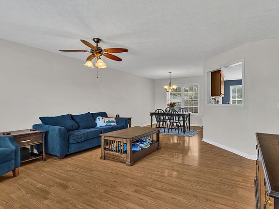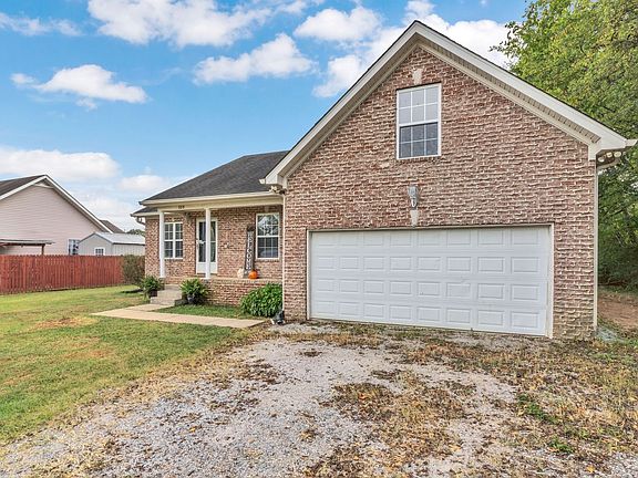 This charming ranch home features a versatile bonus room above the two-car garage. With three bedrooms and two bathrooms, including a primary suite with a garden tub, shower, double vanities, and walk-in closets, this home offers both comfort and convenience. Enjoy the outdoors on the covered deck or front porch. The open dining room and great room are perfect for entertaining. The kitchen boasts ample cabinetry, all appliances, and a bar area for casual dining. Located close to the interstate, you'll have quick access to Kentucky or Nashville while enjoying a serene, suburban setting. Additional highlights include a storage shed, central heat and air (installed in February 2024), and a blend of new paint, laminate flooring, and carpeting. Fresh paint through-out