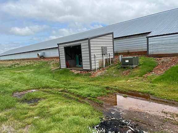 Tyson 8 house Broiler farm. (6) 40 x 400 metal truss late 90s and (2) 55 x 600 drop ceilings, wood framed Built 2011. Shop/office. 2 large Propane Tanks 12 k and 15 k. Turnkey with new metal sidewalls on 400 ft houses and new rolls doors will be added. (2) Wells and Rural Water.
