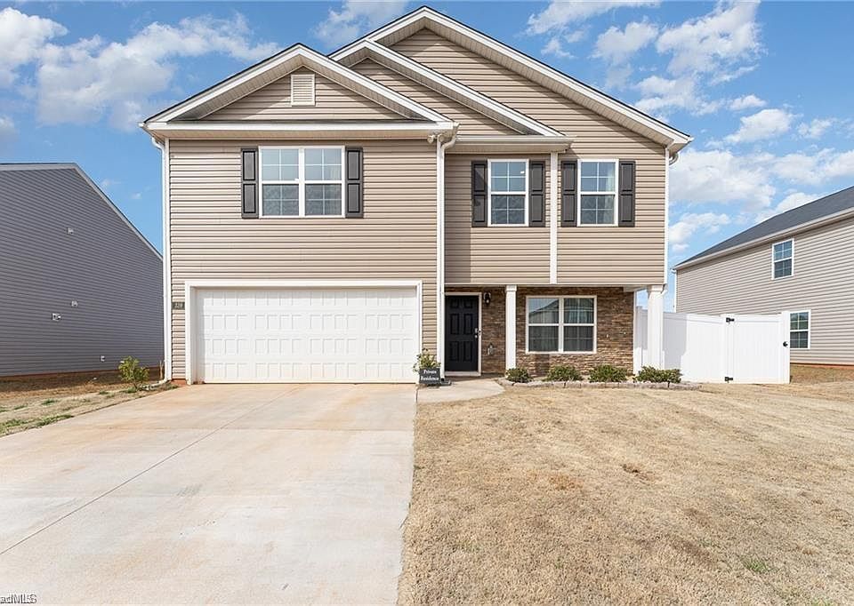 Vivian floor plan w/over 2,200 sf. in Dolcetto Community! Beautiful Asher stone accentuates the exterior & draws the eye! If you like to entertain you will LOVE the layout, open and spacious is an understatement in this new home! Main level offers the ideal kitchen with island boasting exquisite & modern grey Cane Shadow cabinets, elegant white Juparana counters and glistening stainless steel appliances! Wool Oak luxury vinyl flooring flows nicely throughout the main level with carpet on the upper level. Formal dining room, large yet cozy great room and 8x10 patio in back to enjoy the outdoors as well. White vinyl fence. Talk about a spacious primary bedroom, wow! 2 more bedrooms each have WALK IN CLOSETS providing a spot for everything & the upper level loft is perfect for game night with family & friends. Close to shopping, elementary school, Charter school and mere minutes to I-85 expressway. A quick and easy commute to just about anywhere in the Triad or Charlotte area!