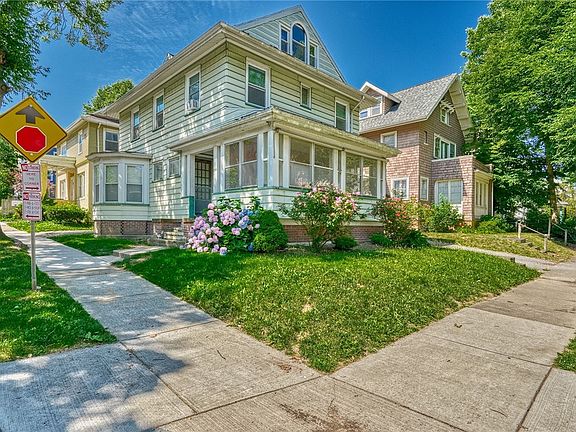 This charming American foursquare in historic Maplewood provides countless amenities: gleaming hardwoods; leaded glass windows; two car private driveway; newer roof; high efficiency furnace; glass block basement windows; new 100 amp electric service, to name only a few. The welcoming entryway is adorned with original honeycomb tiles and Greek key border, and leads to a stately living room. The eye is drawn to a decorative brick fireplace flanked by built-in bookcases. French doors open to a sunny enclosed porch — perfect as a study or artist studio. The formal dining room, perfect for large get-togethers, impresses with its gracious five-paneled bow window. The modern chef's kitchen features ample storage and newer appliances. Upstairs, find three large bedrooms, two connected by a quaint dressing room. The updated bathroom offers modern convenience but maintains the home's aesthetic charm. A full attic provides storage or potential for additional living space. The full basement was recently improved with a $25K waterproofing system, including two sumps, new drainage tile, air management system, and a new cement floor. Delayed negotiations Tuesday, July 16 at noon.