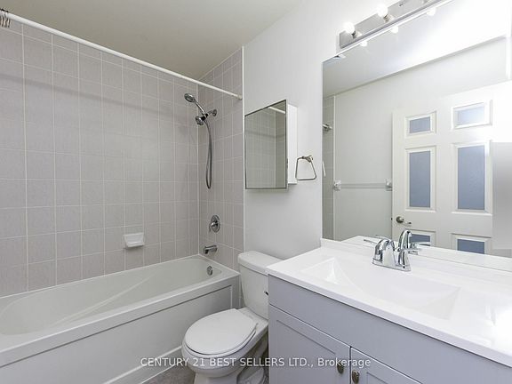 Discover one of the largest 1 bedroom + den units in the area, featuring 9 ft ceilings and a bright, open layout. Enjoy stunning views of the City Centre and Toronto skyline from the walk-out balconies in both the living room and bedroom. This carpet-free home boasts sleek laminate flooring throughout for a modern, clean feel.The kitchen is equipped with brand new stainless steel appliances, ample cabinetry. The bedroom features a floor-to-ceiling window, allowing plenty of natural light, along with direct access to the balcony. The den provides additional space, perfect for a home office or guest area. The unit also includes ensuite laundry with a white stacked washer/dryer.The building offers extensive amenities, including an indoor pool, bowling alley, tennis court, gym, guest suites, sauna, hot tub, aerobics room, theatre, billiards, and 24-hour concierge service.Located at Confederation and Rathburn, this condo provides easy access to Square One, schools, shopping, public transit (with the upcoming LRT), Sheridan College, and major highways. Underground parking and a locker are included.