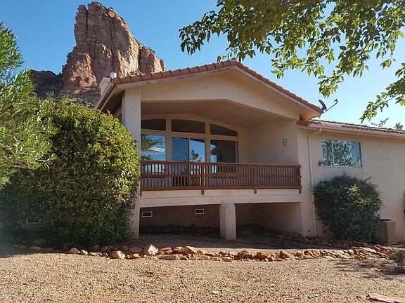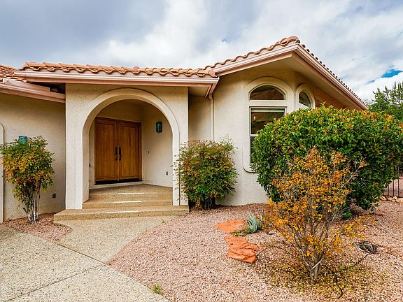 This is a fantastic home situated on a large corner lot with red rock views! The home features a spacious split floor plan with vaulted ceilings, large kitchen and an abundant amount of natural light throughout. The master bedroom has his and hers closets, dual vanities, a walk in shower with grab bars and a soaking tub. Enjoy the sunset from the rear covered deck or the sunrise from the paver patio in the front of the home. Near Oak Creek Country Club Golf Course, shopping, and hiking.