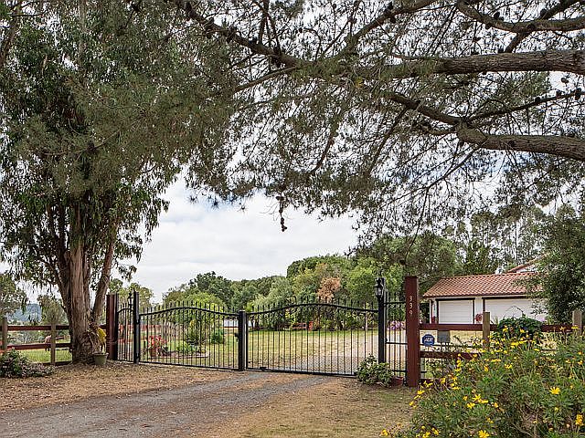 Welcome to your own 5-acre Spanish-style equestrian ranch in Aromas! This custom-built, 4-bedroom/2.5 bath gated estate features 2800sf of modern comfort under terracotta rooftops and stunning open-beam ceilings, custom made from North Carolina White Ash. Originally designed to house up to 30 horses, this peaceful property features fenced pastures, triple-stall barn w/outdoor paddocks, horse wash, 4,000sf Mare Motel, and enough covered parking for 17 vehicles (incl. attached 3-car garage). Mature trees wall off every building from adjacent properties. The courtyard features a pergola & nearby hot tub, plus plenty of room for gardening, entertaining, or getting away from it all. Indoors, enjoy an expansive living room with huge stone fireplace, and a modern kitchen with custom-finished cabinetry, Wolf gas range and dual wall ovens. 3 beds + 1 half-bath on the main level, with a private master suite upstairs. Discussions are underway to install a security gate at Ricardo Dr & Cole Road.