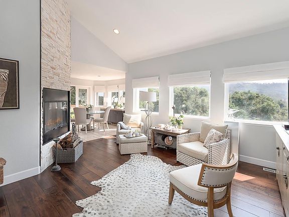 You will be greeted with panoramic views from this stunning 4 bedroom/3.5 bath, San Benancio home! Sitting on over 5 acres of land, this property has a ton to offer! The home boasts a gorgeous, formal entry, separate living room and family room, two fireplaces and large dining area. Beautifully updated wood flooring, vaulted ceilings, and large windows throughout provide abundant natural light and a beautiful, turnkey property. The kitchen features and open concept finished with travertine floors, breakfast bar, granite countertops and upgraded stainless appliances. The spacious master suite hosts a cozy sitting area, fireplace, soaking tub, and private balcony. The outdoor space can accommodate large gatherings with multiple entertaining patios and decks for you and your guests to enjoy. A two-car garage and circle driveway provide ample parking for oversized vehicles and a guest parking. Do not forget the bonus guest unit which is perfect for hosting your out of town visitors!