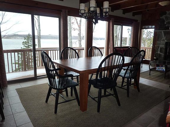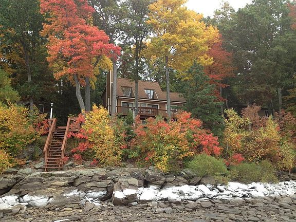 Lake Wallenpaupack Lakefront Home with Spectacular Lakeviews everywhere! Enjoy Gorgeous Sunsets from your Deck or sitting in your Hot Tub. This immaculate Lake Home offers 3 Bedrooms, 2.5 Baths, Private Master Suite, Lots of Natural Light, Sky Lights, Open Floor Plan, Wood Burning Stone Fireplace in Living Room, Tongue & Groove Ceiling, Granite Kitchen, Beautifully Landscaped, Lots of storage including an Outside Shed and Those Incredible Lake Views! This Home comes fully furnished and with your own Dock. Lots of outdoor entertaining areas to relax and just enjoy the Lakeviews with Family and Friends. If you are looking for Magnificent Lake Views, A Beautiful Lakefront Home and Excellent Location to Restaurants and Shopping, This Is The One For You!