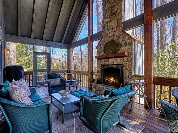 Summer is around the corner, enjoy it in this lovely four-bedroom, four-bathroom cottage in the charming Sheep Laurel neighborhood in High Hampton! The heart of the home is the living room which is filled with natural light from the floor-to-ceiling windows. The details such as wood paneling and a native rock fireplace give this home so much personality. Enjoy the outdoors even during relaxing mountain rains on the covered, screened-in porch with wood burning fireplace. The spacious kitchen is easily accessed from the living and dining rooms and for the ultimate convenience, a separate entrance into the laundry and mud room. Two bedrooms, including a primary suite with a private porch round out the first floor. The downstairs bathrooms have both been recently updated with neutral and soothing white and gray tiles and finishes. Upstairs, you will find two additional bedrooms both with individual bathrooms. The living areas have hardwood floors and carpet in the bedrooms. The home comes fully furnished. The HVAC unit is only two years old, and the home is on public water and sewer. Qualifies for the ability to apply for membership to the Club at High Hampton.