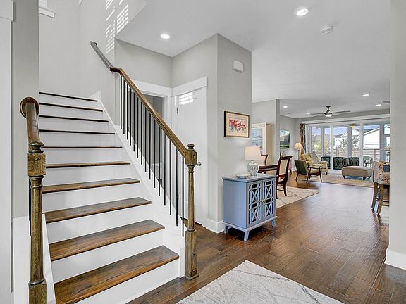 Showcase Home, Beautiful Inside & Out! Fantastic floor plan features first floor master suite, open living areas, second floor family space/loft and 3 guest bedrooms. Large southern front porch welcomes you home! Gleaming engineered wood floors flow through foyer, formal living/study area, family room, kitchen, dining room & half bath. Corner fireplace creates a lovely ambiance in the family room. Kitchen is a dream with large center island, silestone counters, upgraded glass cabinet doors, and subway tile back splash. Extended screened porch opens off family room. Drop zone located just inside the rear entry door. King sized master suite downstairs includes upgraded ensuite with dual sinks, elevated vanity, and custom tile shower. Hardwood staircase leads to 2nd floor family space.