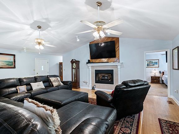 Covered deckDining areaTwo insulated steel outbuildingsManicured open spacesSurrounding hardwoodsWell-appointed kitchen with pantryGenerous master suite